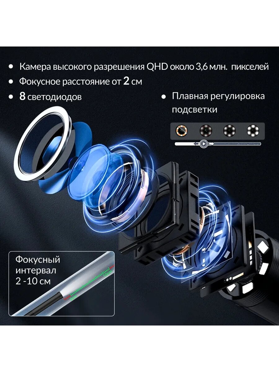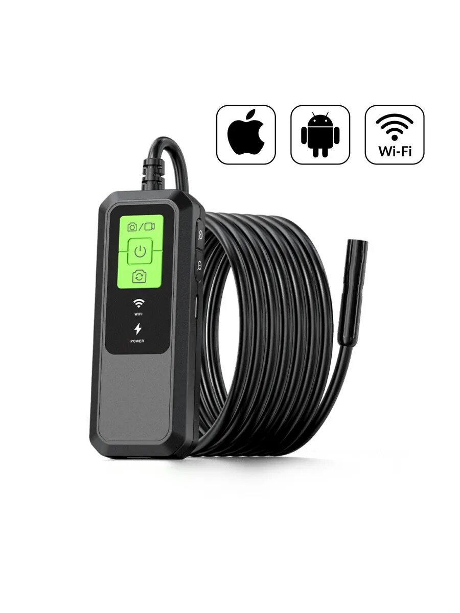 Откройте новые возможности для диагностики и осмотра с видеоэндоскопом iCartool IC-V803! Этот высококачественный эндоскоп с Wi-Fi подключением и разрешением 3.5 Мп идеально подходит для визуального контроля труднодоступных мест, таких как трубы, двигатели и другие объекты. Важно: ваш Android-смартфон/планшет/телефон должен поддерживать функцию OTG и подсоединение внешней камеры. Особенности: Передача изображения посредством встроенного Wi-Fi модуля Высокая детализация изображения с камеры разрешением QHD (2560x1440) Полужесткий зонд с эффектом памяти формы длиной 3м Диаметр зонда 7,9 мм Регулируемая LED-подсветка с 8-ю светодиодами, плавная регулировка с помощью колеса Фокусное расстояние от 2 до 10 см Широкий угол обзора 70° Возможность записи фото/видео одной кнопкой Модуль Wi-Fi на лицевой панели имеет 2 индикатора: зарядка батареи и статус подключения Характеристики: Элементы питания сеть/аккумулятор Диаметр камеры 7.9 мм Степень защиты IP67 Max угол обзора 70 град Фокусное расстояние 20-100 мм Размер дисплея нет дюйм Разрешение 2560х1440 px Передача изображения на ПК WiFi/USB Длина зонда 3 м Возможность работы со смартфоном да Количество аккумуляторов в комплекте встроенный Разворот камеры нет Время работы на одном заряде 2.5 ч Рабочая температура от 0 до 60 °С Вес нетто 0.19 кг В комплект входят вспомогательные насадки (крюк, магнит, зеркало), что расширяет список выполняемых задач (крюк для работы с электропроводкой, магнит для извлечения металлических предметов из труднодоступных мест).