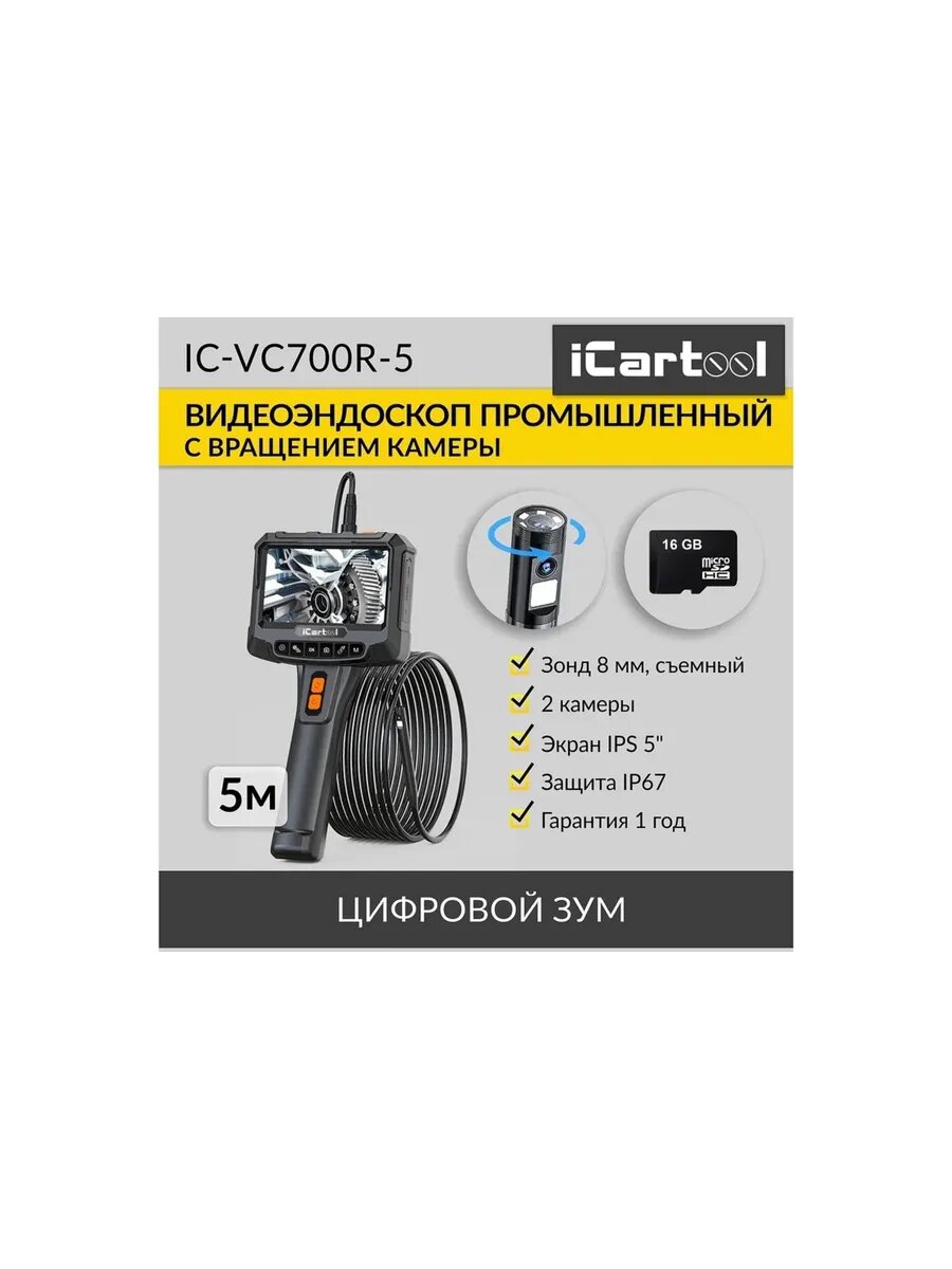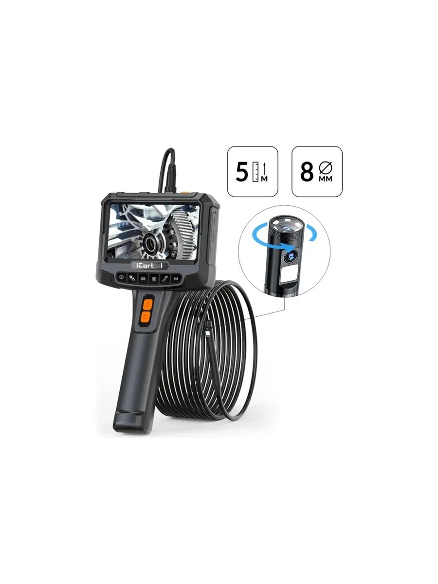 Промышленный видеоэндоскоп iCartool IC-VC700R-5 — это уникальное устройство, предназначенное для профессиональной диагностики и визуального осмотра труднодоступных мест и объектов. Одной из главных особенностей данного эндоскопа является возможность вращения боковой камеры на угол до ±350 градусов, что обеспечивает полноценный круговой обзор, значительно сокращая необходимость повторных процедур осмотра.