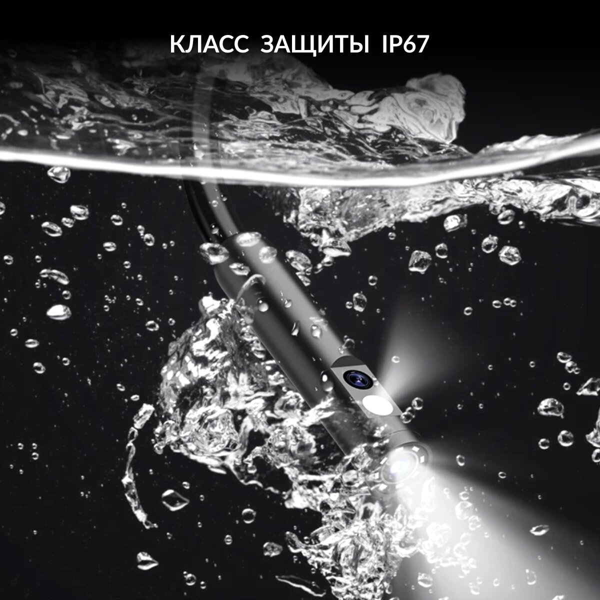 Зонд видеоэндоскопа полужесткий, запоминает форму, которую ему придают. Плавная регулировка светодиодной подсветки позволяет эффективно освещать исследуемую зону, обеспечивая отличную видимость в темных местах. Управление съемкой осуществляется через специальное приложение с расширенным функционалом, а основные команды дублируются кнопками на корпусе Wi-Fi модуля для удобства пользователя.