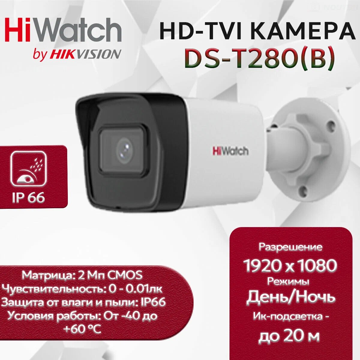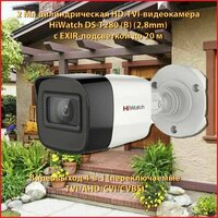 Видеокамера HiWatch DS-T280B, проводная, EXIR-подсветка, 2Мп, HD-TVI, цилиндрическая, IP67: сравнение цен, характеристики, фото, актуальное наличие и цены.