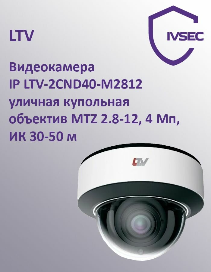 Купить Видеокамера IP LTV-2CND40-M2812 уличная купольная, объектив MTZ 2.8-12, 4 Мп, ИК 30-50 м с доставкой по всей России. Видеокамера IP LTV-2CND40-M2812 уличная купольная, объектив MTZ 2.8-12, 4 Мп, ИК 30-50 м: сравнение цен, характеристики, фото, актуальное наличие и цены.