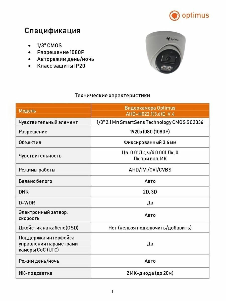 Видеокамера Optimus AHD-H022.1(3.6)E_V.4: сравнение цен, характеристики, фото, актуальное наличие и цены.