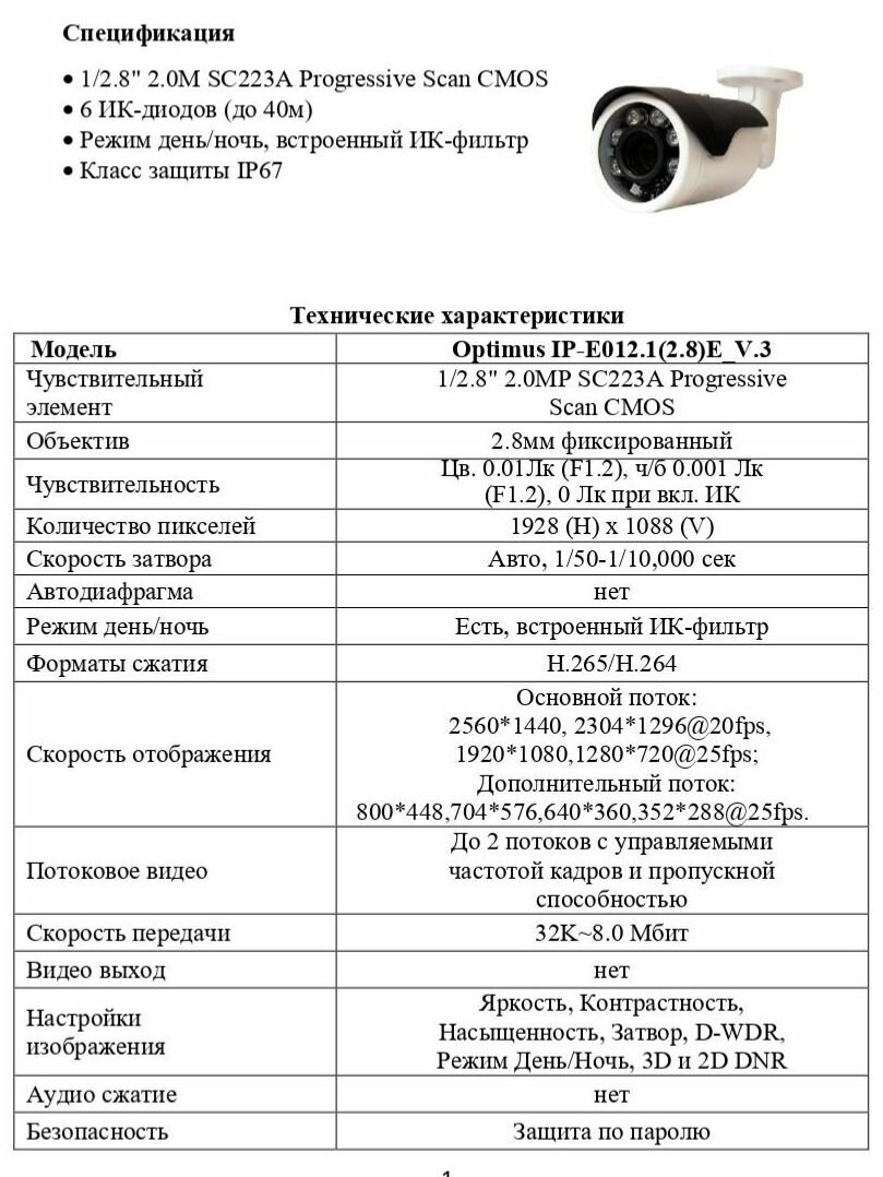 Видеокамера Optimus IP-E012.1(2.8)E_V.3: сравнение цен, характеристики, фото, актуальное наличие и цены.