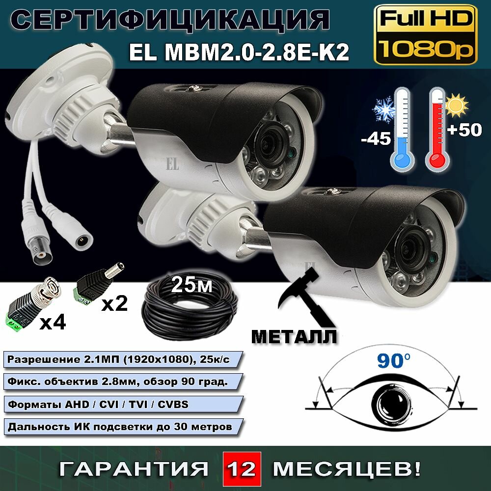 Видеокамеры Optimus EL-MBM2.0-2.8E-K2 уличные с кабелем, разъемами