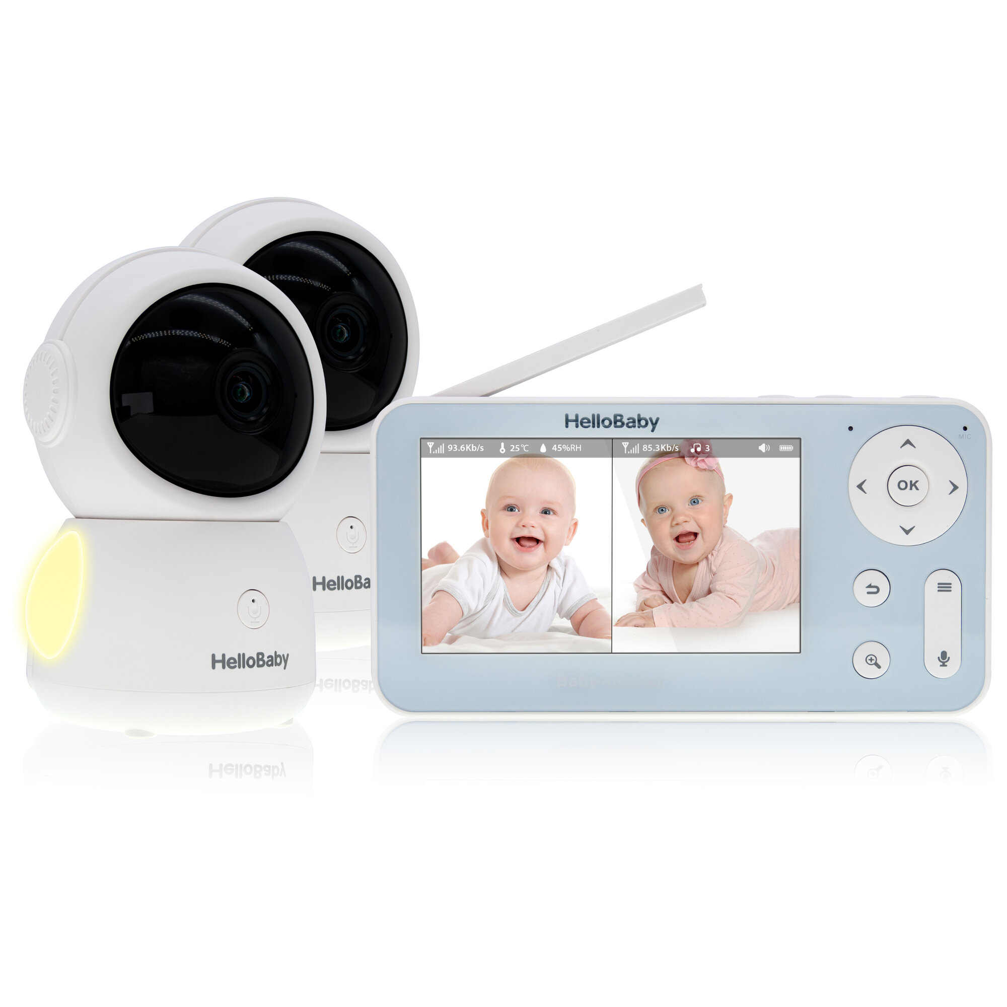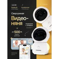 В комплект этой видеоняни включены монитор и две камеры, чтобы вы могли наблюдать за двумя детьми одновременно, вести мониторинг с разных ракурсов или контролировать обстановку в разных комнатах. Цифровая видеоняня Hellobaby HB110X2 с большим экраном и двумя камерами, управлять которыми можно удаленно. В видеоняне собраны все важные функции, включая датчик движения и возможность подключения к смартфону или планшету для мониторинга из любой точки мира. Видеоняня непрерывно контролирует вашего малыша днём и ночью в режиме 24/7. Может работать в режиме экономии энергии и включаться при обнаружении звука (VOX) или движения вокруг камеры. При этих же событиях поступает пуш-уведомление на смартфоне, если вы подключили видеоняню к домашней сети Wi-Fi. С помощью функции обратной связи вы можете попытаться успокоить малыша на расстоянии, если он расплачется.