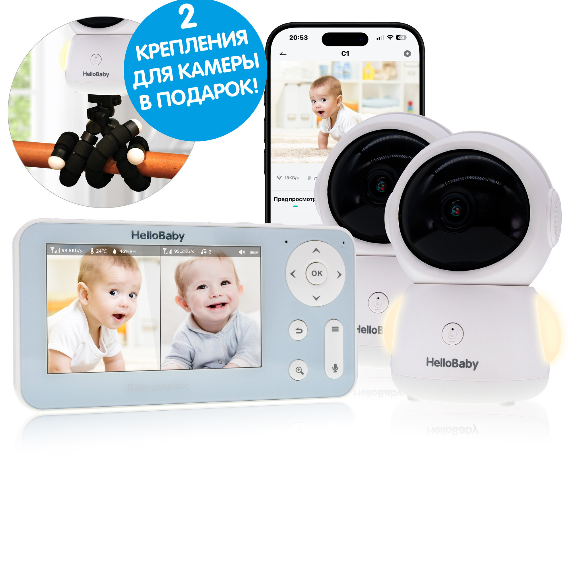Купить Видеоняня Hellobaby HB110X2TR (две камеры с креплениями) с доставкой по всей России. Видеоняня Hellobaby HB110X2TR (две камеры с креплениями): сравнение цен, характеристики, фото, актуальное наличие и цены.