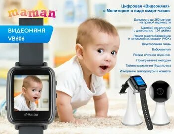 Купить Видеоняня беспроводная Maman VB606 с монитором в виде смарт-часов с доставкой по всей России. Видеоняня беспроводная Maman VB606 с монитором в виде смарт-часов: сравнение цен, характеристики, фото, актуальное наличие и цены.
