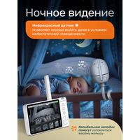 | Дополнительная информация | Голосовая активация (VOX), датчик влажности, двусторонняя голосовая связь, колыбельные мелодии, ночник, работа от сети 220 В |