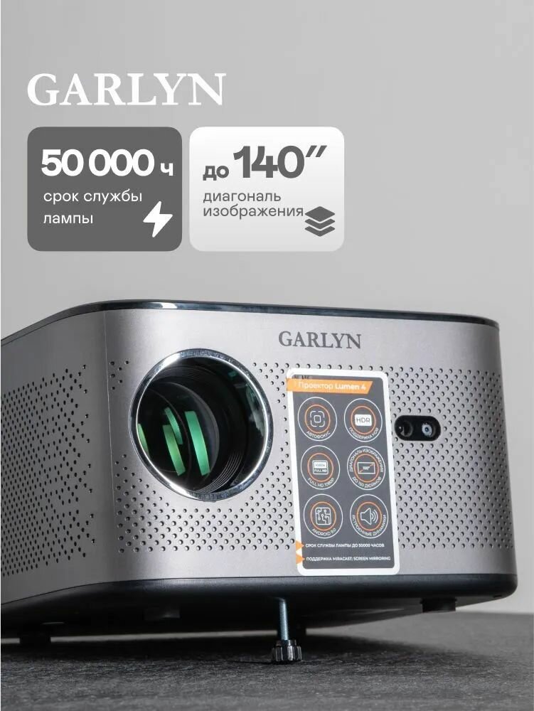 Купить Проектор GARLYN «Lumen», Full HD, 1920х1080, 2000:1, Bluetooth, серый с доставкой по всей России.