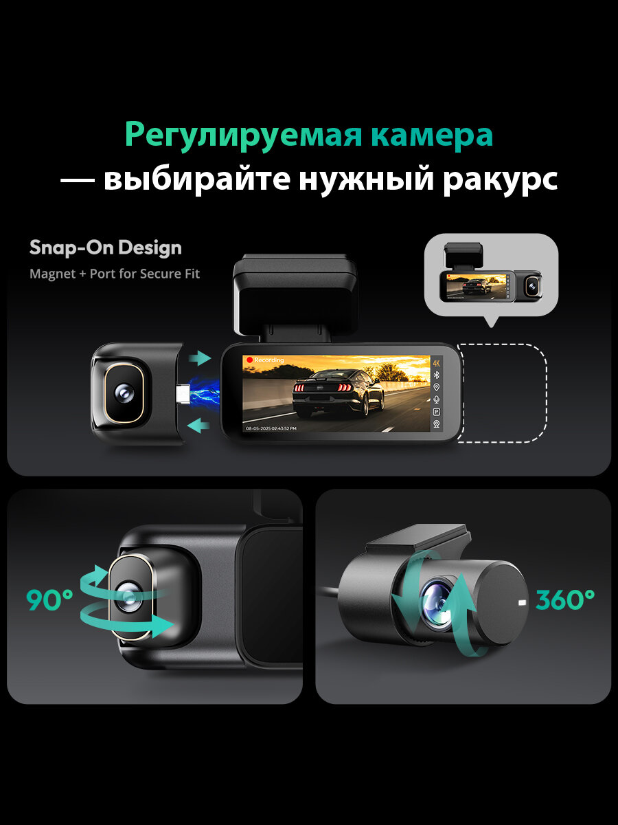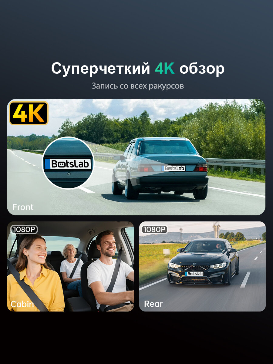 Видеорегистратор 360 Botslab GH980 Hpro, с тремя камерами, 4K, WiFi