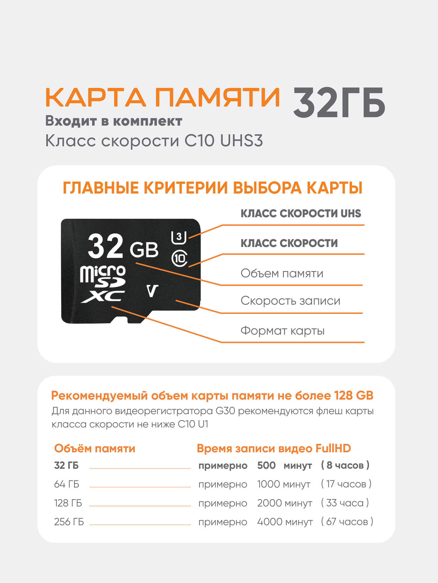 Мини гаджет поддерживает карты памяти microSD объемом до 128 ГБ, давая вам достаточно места для хранения всех важных записей. Встроенный датчик удара автоматически активирует запись в случае аварии, сохраняя ценные доказательства.