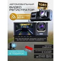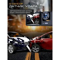 Автомобильный видеорегистратор с тремя камерами и функцией удаленного доступа: фронтальная, внутренняя салонная и заднего вида 3 в 1 поможет внести ясность в спорные ситуации, защитить вас в случае недоразумений и аварий на дороге. Разрешение Full HD 1080 позволяет записывать поездку в отличном качестве. Регистратор автомобильный снабжена 2,0-дюймовым HD экраном ЖК дисплея. Высокое качество видеорегистратора снятой записи позволит получить четкое изображение как с переднего, так и с заднего ракурса, поэтому Вы без труда сможете рассмотреть все номера машин и важные предметы. Широкий угол обзора передней видеокамеры 150 - 170 градусов, задней - 120, захватывает все происходящее, фиксируя нон – стоп несколько полос проезжей дороги. Цифровая матрица авторегистратора и оптические линзы объектива ведут съёмку 30 кадров в секунду. Монитор с диагональю 2 дюйма и встроенные динамики позволяют по времени просматривать видеоматериалы, фото непосредственно на устройстве, и не мешают зеркалу заднего вида. Доп оборудование заменит парктроники и съемку телефоном при необходимости заснять номерные знаки. Благодаря компактным размерам авто регистратора не мешает обзору водителя и прекрасно впишется в интерьер Вашей машины. Надежный скрытый держатель крепления автомобильной камеры, присоска усилитель, крепится на лобовое стекло под зеркало (не наклейка скотч) или антенны. Авторегистратор может быть подключен через разъемы прикуривателя или портативной зарядкой через соответствующий переходник. При движении задним ходом, видеорегистратор для машины автоматически переключается на мини камеру заднего вида с линией парковки. Изображение отображается на мониторе экрана видео гаджета при включении задней передачи картинка в картинке. Задняя видеокамера имеет 4 датчика света освещающих в темное время суток с отображение парковочных линий. Видео и аудио автоматически записываются в бесконечный цикл и сохраняются на карту памяти. Для хранения данных в регистраторе автомобильном имеется слот адаптер для микро Micro SD флешка 32 Гб, которая идет в подарок. Во время столкновения, резкого торможения или других чрезвычайных ситуаций система автоматически блокирует файлы, тем самым, сохраняя важное и используя G-сенсор (G-sensor). Режим парковки 24 часов работает только при прямом подключении к аккумулятору через специальный контроллер, отвечающий за отслеживание уровня заряда акб. Рекомендуем выполнять такое подключение в специализированном автосервисе. Видеорегистратор с камерой заднего вида с авто запуском работает от сети, кабель зарядного устройства в комплекте. Камера автомобильная подходит для грузового и легкового транспорта. Преимущества видеорегистратора -трекер движения: отличное разрешение съемки, стабильная работа, простая установка, циклическая звука запись одновременно с трех записывающих устройств. Видеорегистратор с камерой это инспектор видеонаблюдения работает бесперебойно и выручит в ситуации, когда нужно будет разбираться в дорожном происшествии. Хороший выбор для мужчин и женщин, работающих в такси.