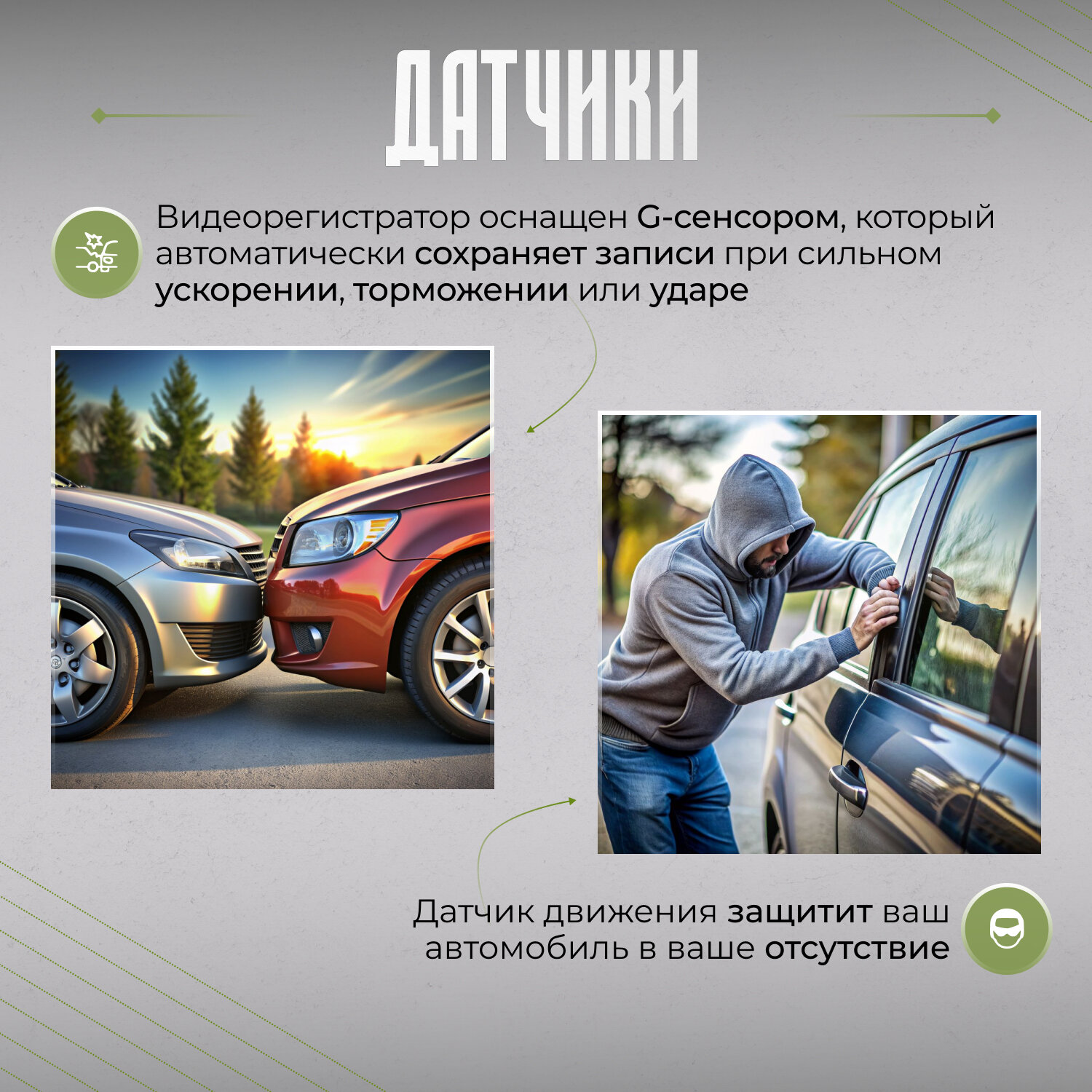 датчик удара (G-сенсор), детектор движения в кадре