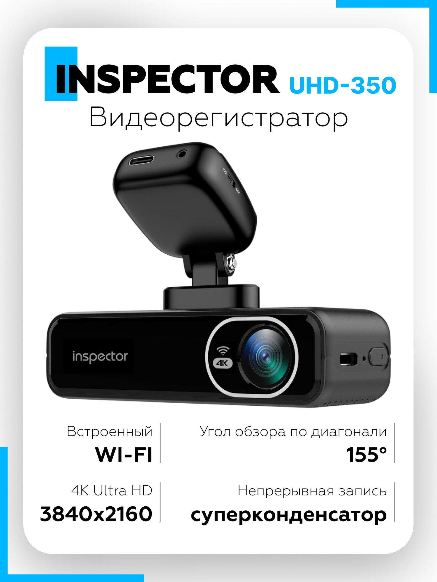 Видеорегистратор Inspector UHD-350 — это надежный помощник для каждого автолюбителя, который ценит безопасность и качество. Оборудованный высококачественной камерой разрешения Ultra HD, данный прибор позволяет записывать каждое мгновение на дороге с невероятной четкостью и детализацией. Уникальная технология стабилизации видео гарантирует, что изображения останутся ясными даже в самых сложных условиях движения. Полноценный видеорегистратор с ультра-широким углом обзора (155 градусов), обладает превосходным качеством съемки 4K даже в темное время суток. Модель оснащена Wi-Fi-функционалом, что позволяет автомобилисту дистанционно настраивать и просматривать записанные видео. Для большего объема хранимой информации в устройстве предусмотрена поддержка карт памяти до 256 Гб (класс записи UHS-I и выше). Наличие магнитного крепления и общераспространенного разъема питания (Type-C) делает эксплуатацию устройства максимально удобной для пользователя. Идеален для тех, кто хочет иметь полный контроль над ситуацией на дороге, Inspector UHD-350 станет выдающимся инструментом в арсенале каждого водителя, обеспечивая не только безопасность, но и спокойствие за рулем.