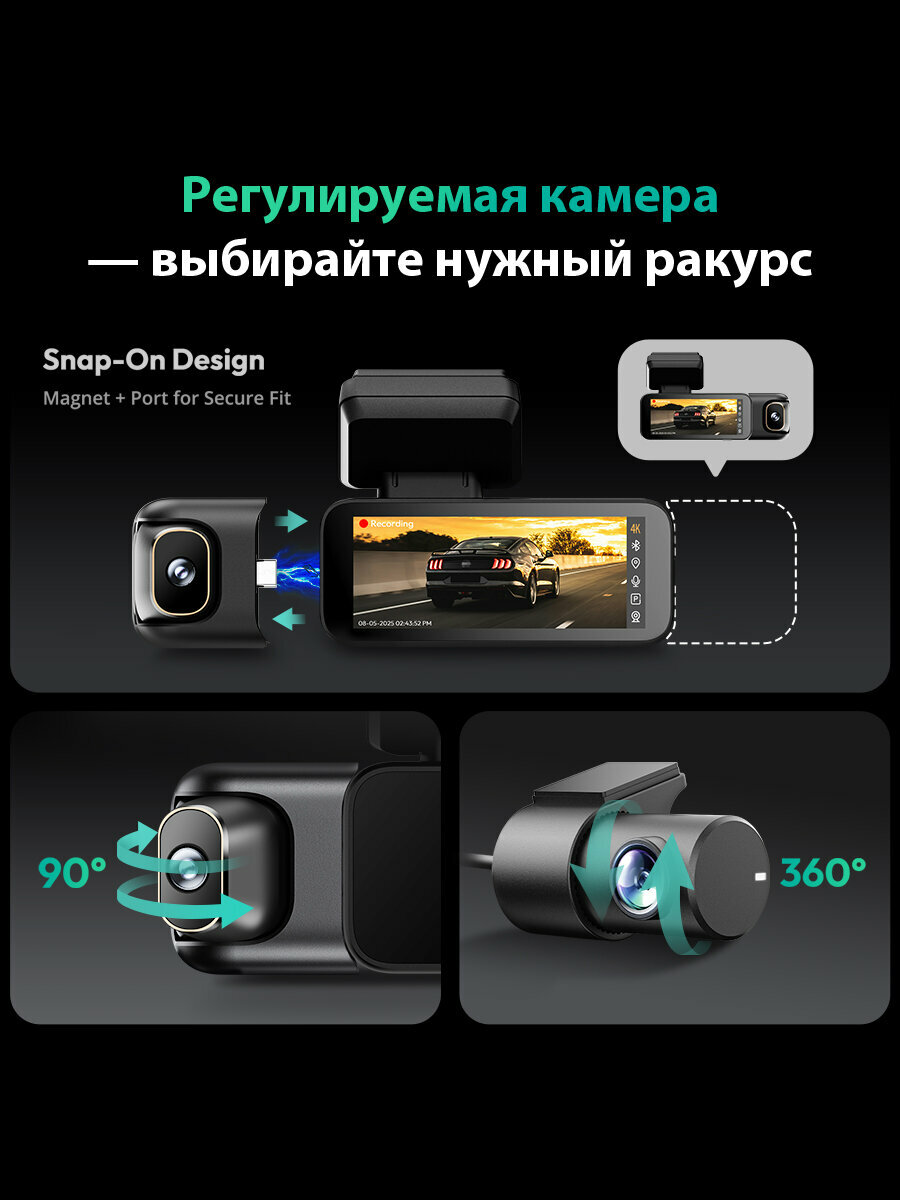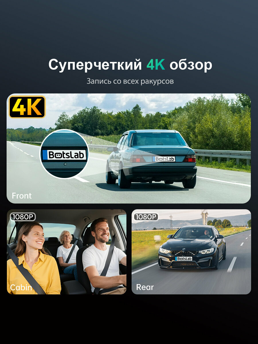 360-Botslab Dash Cam G980H Pro с тремя камерами– видеорегистратор, который ничего не пропустит на своем пути. Он оснащен мощной камерой, которая ведет "дорожный архив" в разрешении 3840x2160 пикселей. Кадры получаются насыщенными и естественными. Широкий угол обзора позволяет захватить "картинку" с трех полос движения. Видеорегистратор оборудован G-сенсором. Он реагирует на любые нестандартные ситуации – резкое торможение, удары, остановку – и автоматически отправляет кадр в архив, на случай конфликтных ситуаций. G980H Pro Dash Cam обеспечит четкость кадров при любом освещении. 3D-алгоритм снижает уровень шума, удаляет все лишнее с изображения. А технология WDR полноценно сбалансирует экспозицию.