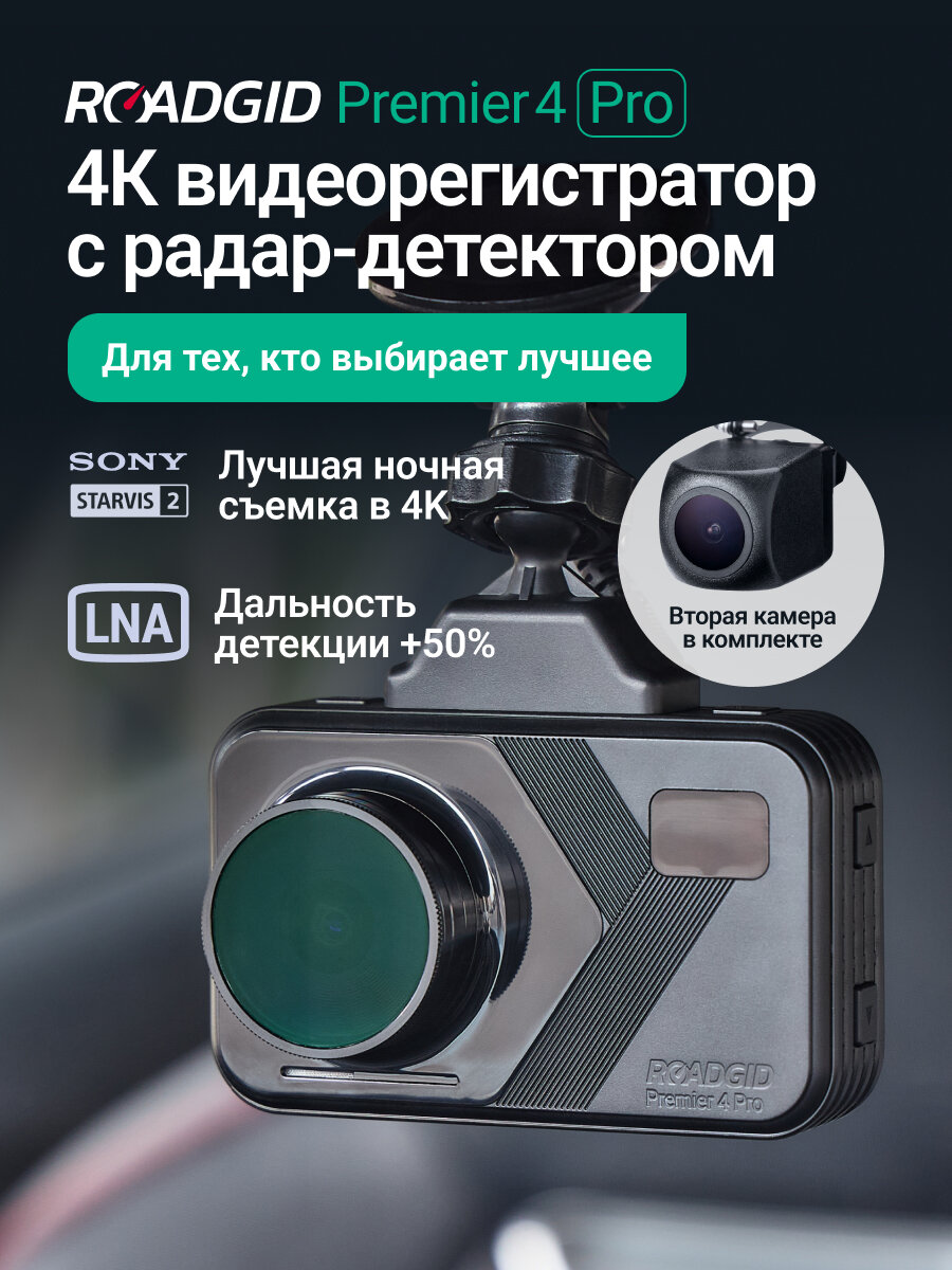 Купить Видеорегистратор для автомобиля с радар-детектором и камерой заднего вида Roadgid Premier 4 Pro 2CH с доставкой по всей России.