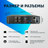 - Поддерживает жесткий диск объемом до 8Tb (в комплект не входит). Доступен вывод изображения через HDMI и VGA на 2 Мп FullHD монитор.