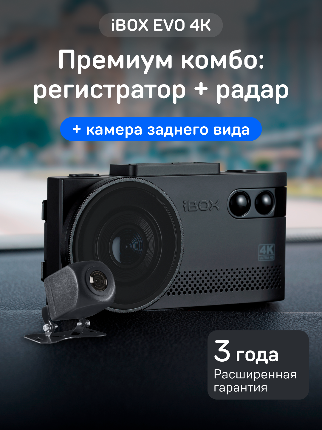| Дополнительная информация | Комплектация:Комбо-устройство, Камера заднего вида, Адаптер питания iBOX Power Cord USB C2 4м, Поворотное магнитное крепление на присоске с активным питанием и подключением камеры заднего вида, CPL-фильтр, Инсталляционный комплект, Предохранители, Элемент крепления на 3М скотче, запасной 3М скотч, Адаптер для карты памяти micro SD, Чехол |