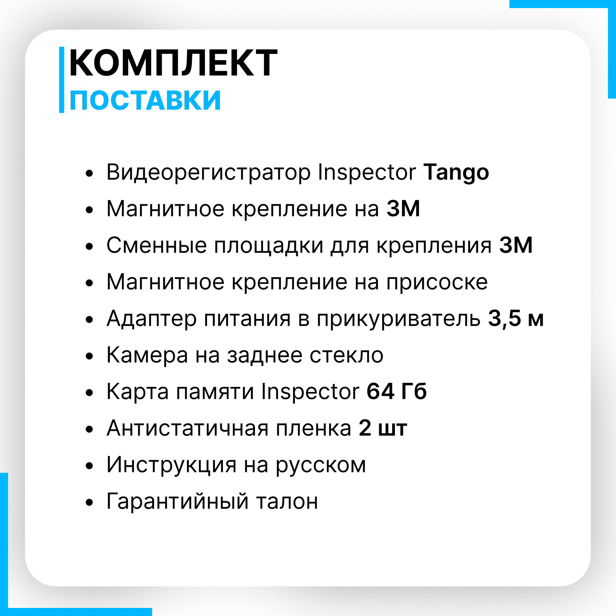 Купить Видеорегистратор Inspector Tango 2 камеры, GPS, магнитное крепление с доставкой по всей России. Видеорегистратор Inspector Tango 2 камеры, GPS, магнитное крепление: сравнение цен, характеристики, фото, актуальное наличие и цены.