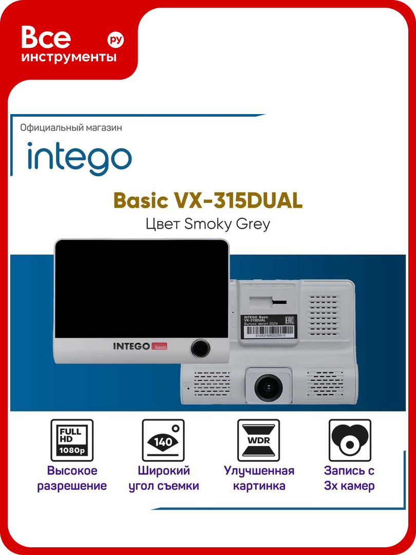 Видеорегистратор INTEGO Basic VX-315DUAL с салонной камерой, картой памяти MicroSD 32 GB в комплекте (и опциональной камерой заднего вида с записью трех каналов видео одновременно) VX-315DUAL-SG: сравнение цен, характеристики, фото, актуальное наличие и цены.