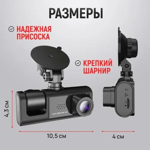 Видеорегистратор MAD, 3 камеры, 3 в 1, с ИК подсветкой, Full HD, черный