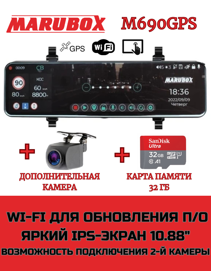 Видеорегистратор с GPS информатором Marubox M690GPS + доп. камера Marubox M68FHD + карта памяти 32Gb: сравнение цен, характеристики, фото, актуальное наличие и цены.