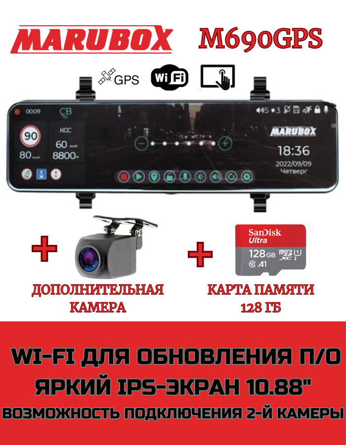 Видеорегистратор с GPS информатором Marubox M690GPS + доп. камера Marubox M68FHD + карта памяти 128Gb: сравнение цен, характеристики, фото, актуальное наличие и цены.