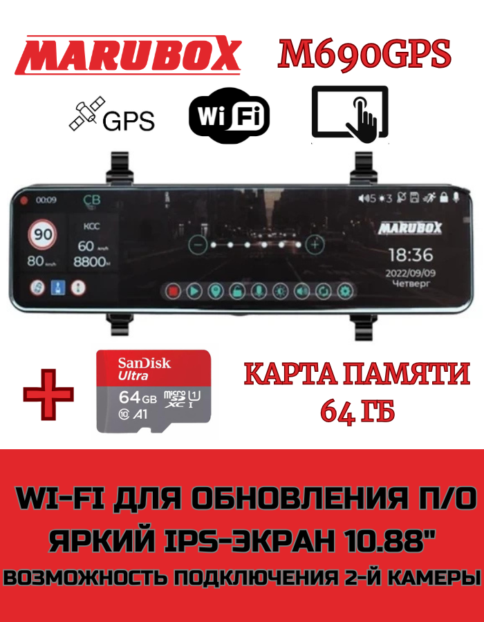 Видеорегистратор с GPS информатором Marubox M690GPS + карта памяти 64Gb: сравнение цен, характеристики, фото, актуальное наличие и цены.