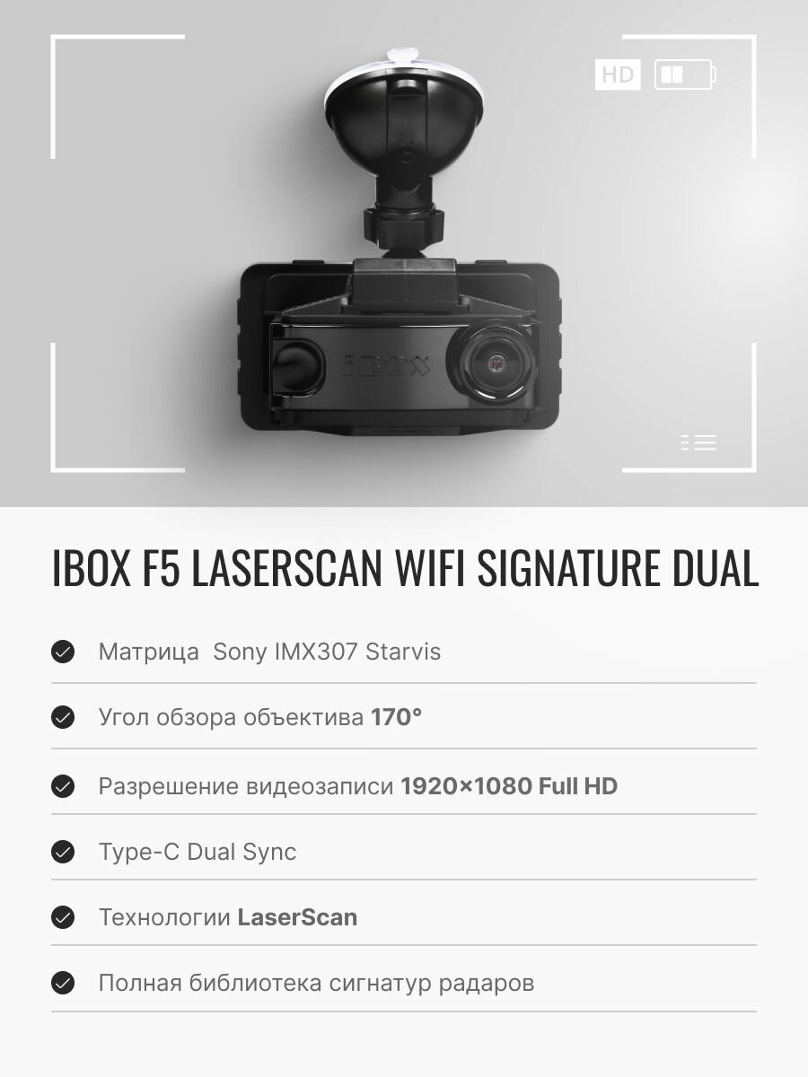 Купить Видеорегистратор с радар-детектором iBOX F5 LaserScan WiFi Signature Dual с доставкой по всей России.