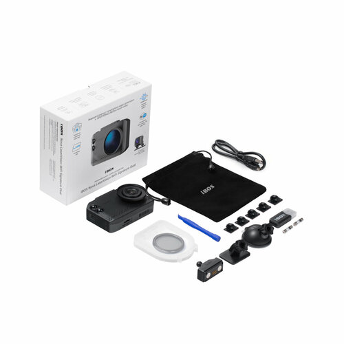 Устройство поддерживает подключение фирменных аксессуаров iBOX: Поляризационный фильтр iBOX Smart CPL 43mm и Кабель питания для скрытого подключения iBOX 24H Parking monitoring cord S12.