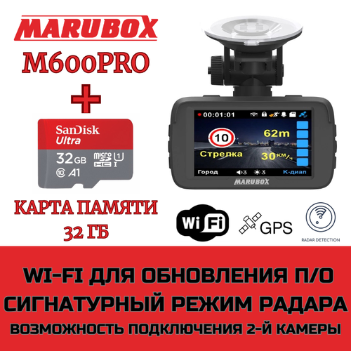 Видеорегистратор с радар-детектором Marubox M600PRO + карта памяти SanDisk microSDHC UHS-I 32Gb: сравнение цен, характеристики, фото, актуальное наличие и цены.