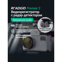 Купить Видеорегистратор с радар-детектором и двумя камерами для автомобиля Roadgid Premier 3 Carbon 2CH, Wi-Fi, GPS с доставкой по всей России.