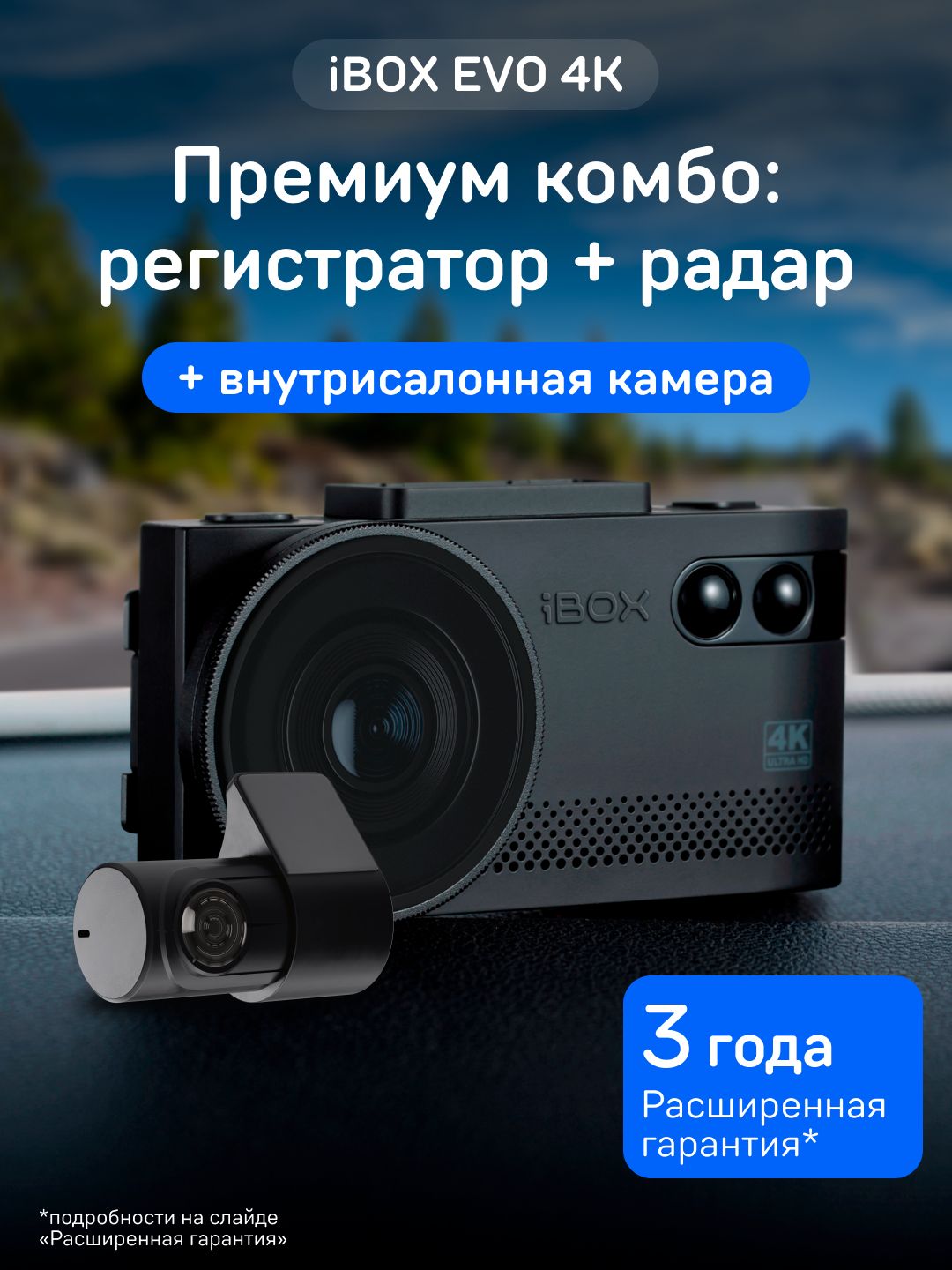 | Дополнительная информация | Комплектация:Комбо-устройство, Адаптер питания iBOX Power Cord USB C2 4м, Поворотное магнитное крепление на присоске с активным питанием и подключением камеры заднего вида, CPL-фильтр, Инсталляционный комплект, Предохранители, Элемент крепления на 3М скотче, запасной 3М скотч, Адаптер для карты памяти micro SD, Чехол |