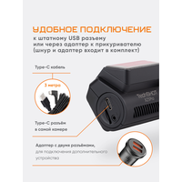 Двойной авторегистратор оснащен датчиком удара, который автоматически активирует запись в случае происшествия, сохраняя важные доказательства в отдельном файле. Управление мини регистратором осуществляется как с помощью кнопок на корпусе, так и через удобное мобильное приложение, совместимое с Android и iOS. Запись ведется в циклическом режиме, что позволяет экономить место на карте памяти microSD объемом до 256 ГБ.