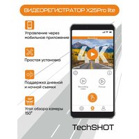 Видеорегистратор TechSHOT X25Pro Lite, Wi-Fi, 30fps, 4K, черный: сравнение цен, характеристики, фото, актуальное наличие и цены.