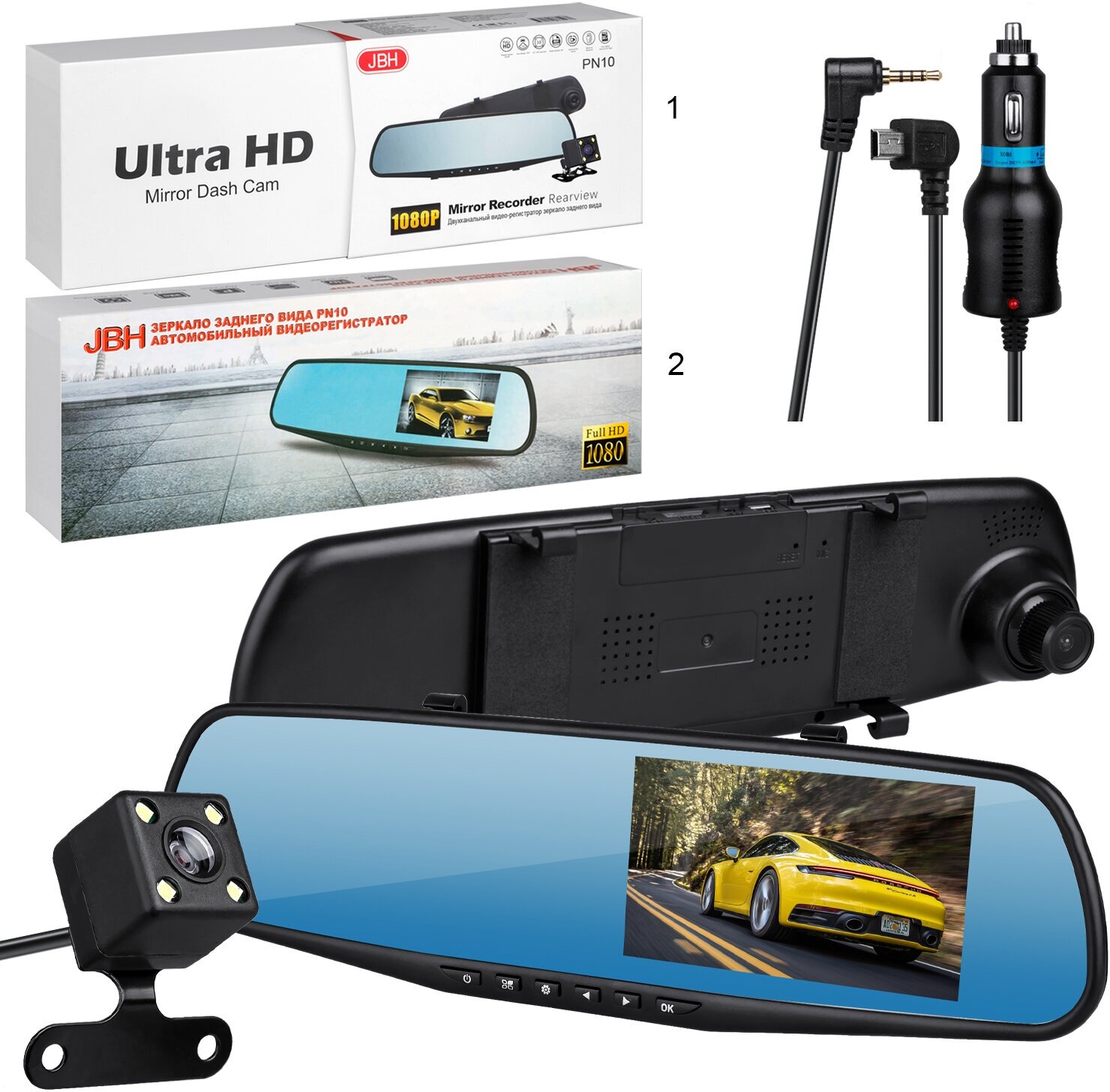 Видеорегистратор зеркало JBH PN10 с двумя камерами Full HD 1080 (1920×1080) / увеличенный LCD монитор 4.5″ / ночная съемка / помощь при парковке: сравнение цен, характеристики, фото, актуальное наличие и цены.