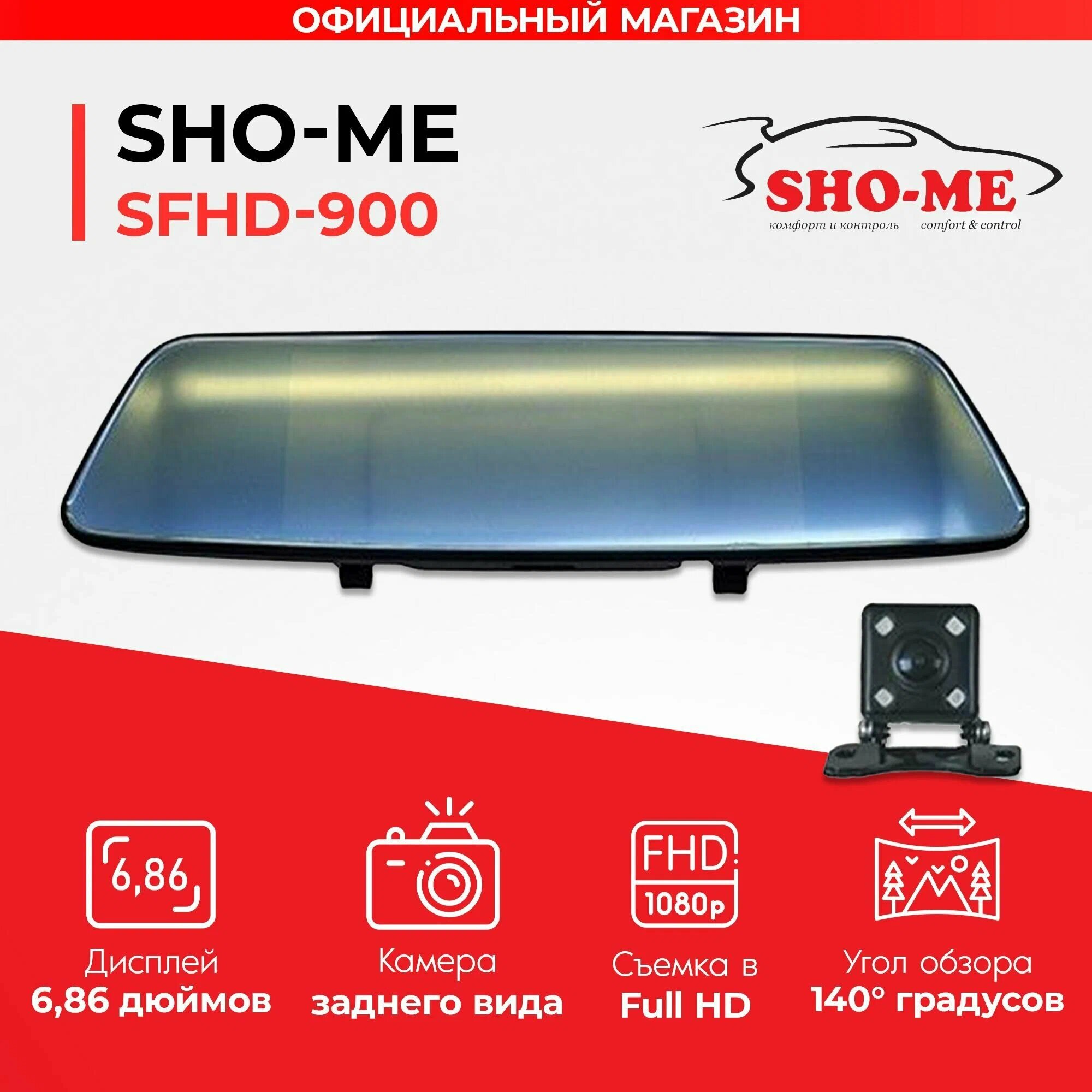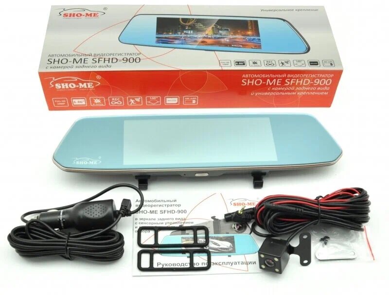 Видеорегистратор-зеркало с камерой заднего вида SHO-ME SFHD-900, универсальное крепление, сенсорный экран, Full HD: сравнение цен, характеристики, фото, актуальное наличие и цены.