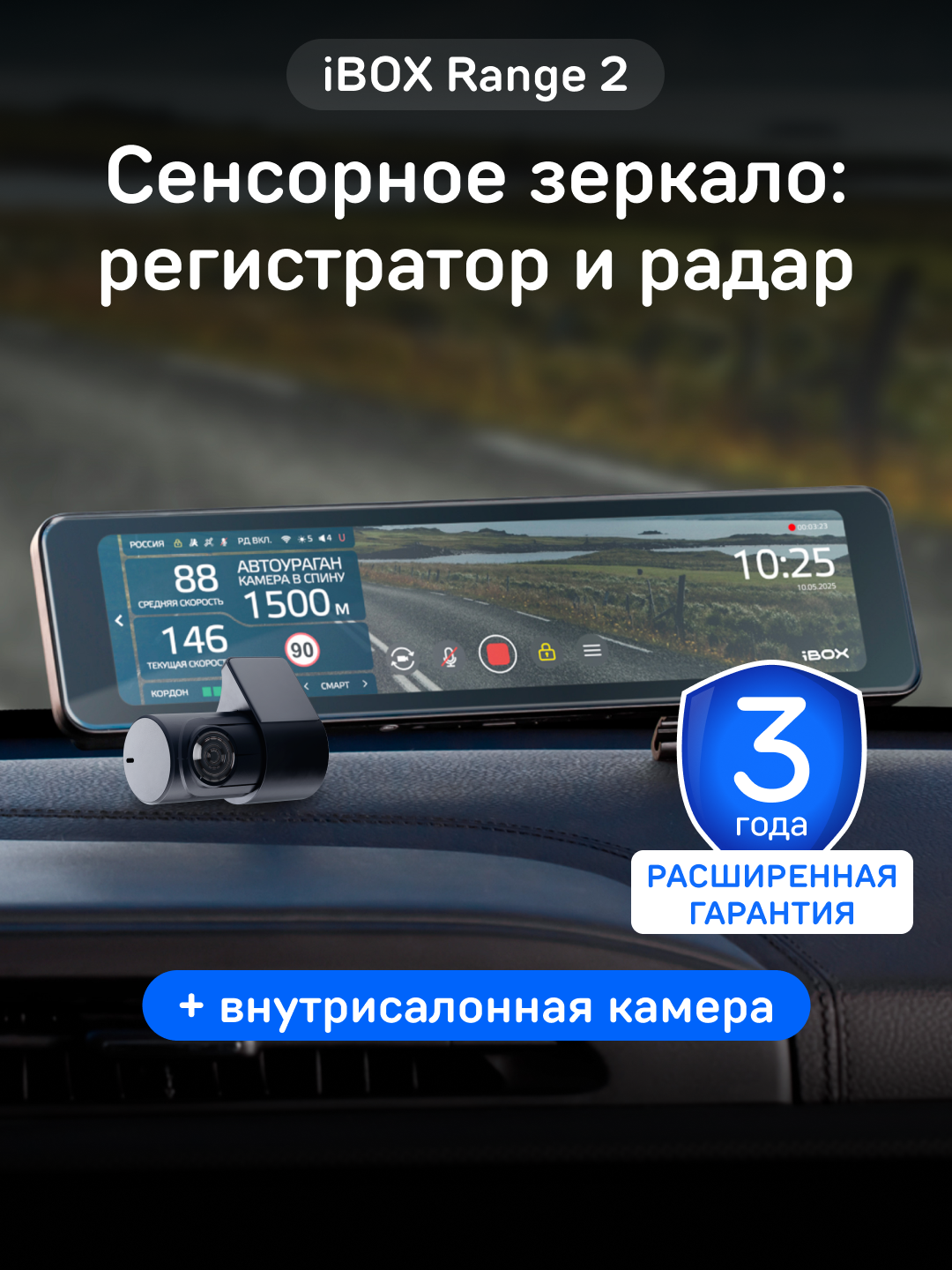 Видеорегистратор-зеркало сенсорный iBOX Range 2 с радар-детектором + Внутрисалонная камера RC FHD4: сравнение цен, характеристики, фото, актуальное наличие и цены.