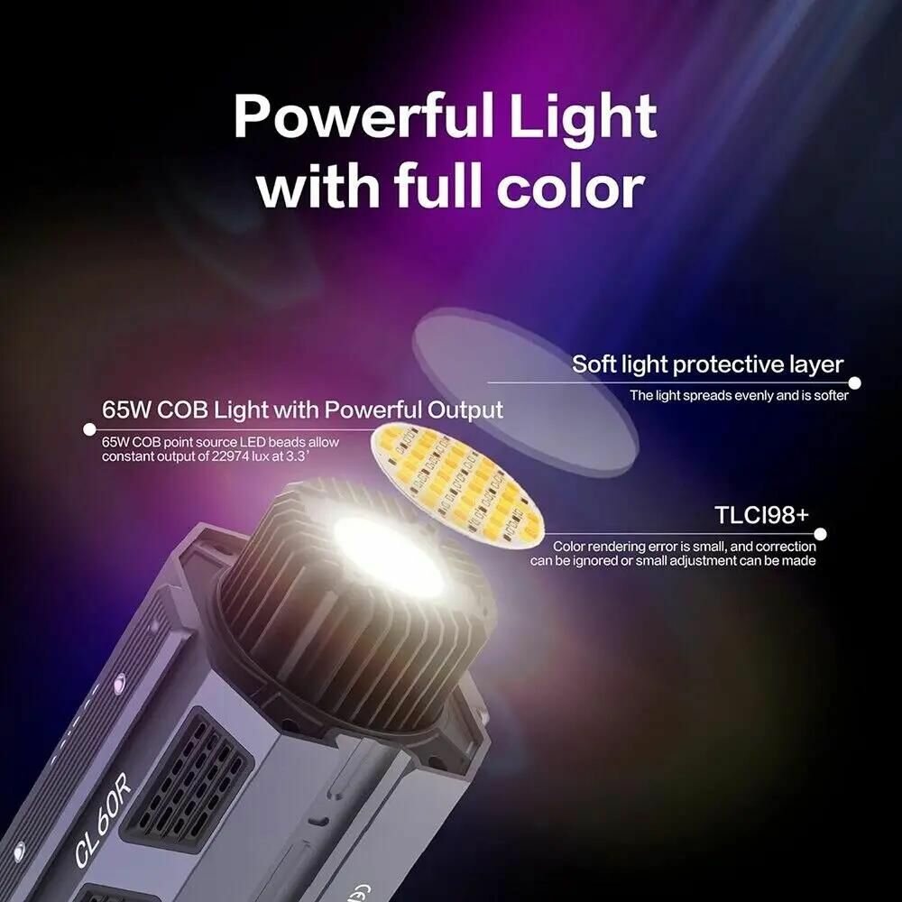 Купить Видеосвет COLBOR CL60R COB, RGBWW 65 Вт, полноцветный, 2700K-6500K, крепление Bowens, управление через приложение с доставкой по всей России. Видеосвет COLBOR CL60R COB, RGBWW 65 Вт, полноцветный, 2700K-6500K, крепление Bowens, управление через приложение: сравнение цен, характеристики, фото, актуальное наличие и цены.