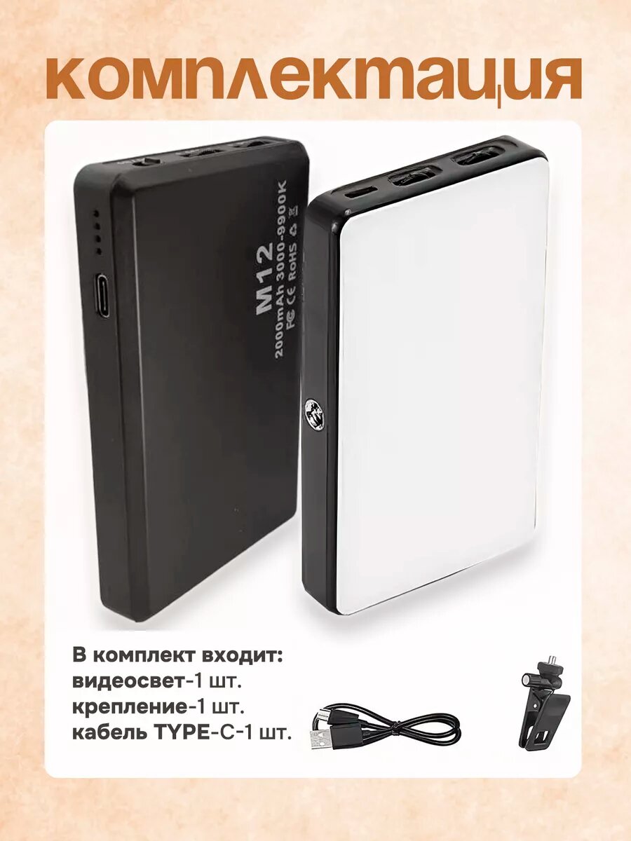 Видеосвет M12 для фото и видео, 90 LED, 1250LUX, Type-C, 2000 мАч, крепление в комплекте: сравнение цен, характеристики, фото, актуальное наличие и цены.