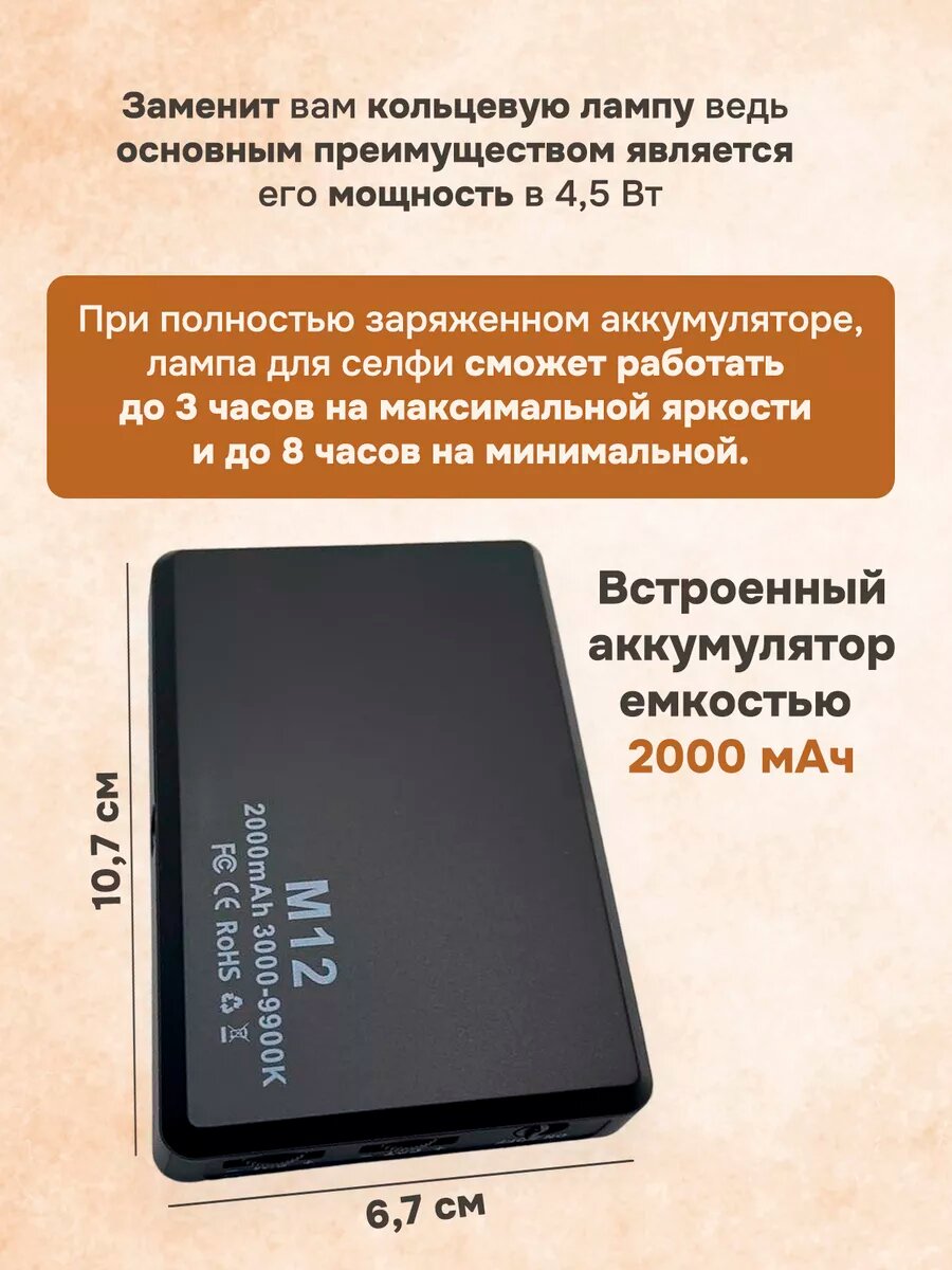 Купить Видеосвет M12 для фото и видео, 90 LED, 1250LUX, Type-C, 2000 мАч, крепление в комплекте с доставкой по всей России.