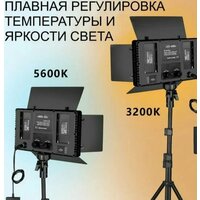 регулировка цветовой температуры, регулировка яркости освещения, штатив в комплекте