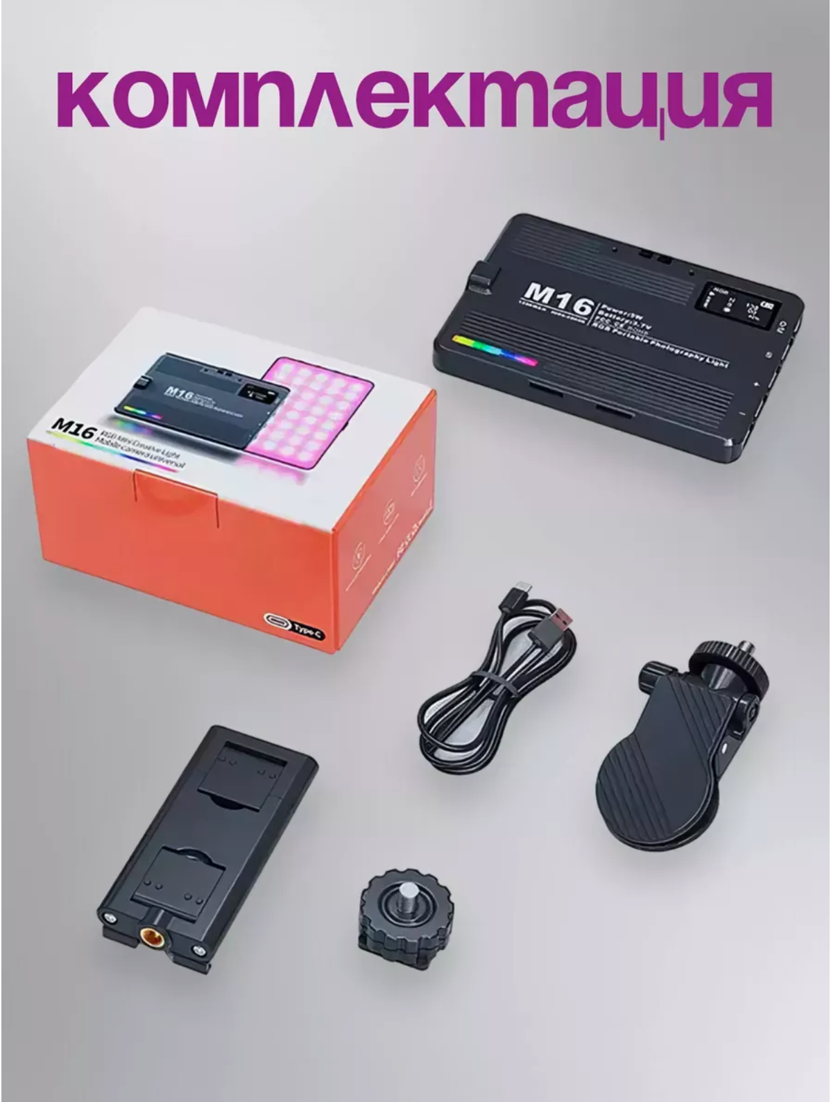 Представляем вам портативный видеосвет М16, который станет незаменимым помощником во время фото- и видеосъемок. С его помощью вы сможете получить высококачественное освещение в любых условиях. Этот селфи свет оснащен креплением, которое позволяет легко закрепить его на телефоне, штативе или фотоаппарате. Таким образом, он подойдет не только для профессионалов, но и для любителей фотографии и видеосъемки. Заменит вам кольцевую лампу ведь основным преимуществом является его мощность в 5 Вт и компактные размеры 10.5х7,6х1,4 см. Благодаря этому, вы сможете легко брать его с собой в кармане или маленькой сумочке. Видеосвет имеет встроенный аккумулятор емкостью 1500 мАч и зарядный разъем TYPE-C. Это обеспечивает его долгую автономную работу. Яркость света составляет 1000LUX, он оснащен 27 белыми, 27 желтыми светодиодами. Кроме того, он может быть использован стилистами, визажистами и другими мастерами beauty сферы. Станет отличным выбором для съемок на телефон в темное время суток, на вечеринках или для реализации креативных идей тикток и рилс. Видеосвет обеспечит вас качественным и ярким освещением. При полностью заряженном аккумуляторе, лампа для селфи сможет работать до 1.5 часов на максимальной яркости и до 8 часов на минимальной. Таким образом, вы не будете ограничены по времени и сможете сделать все необходимые съемки. Температура светопередачи составляет от 3000К до 9900К, что позволяет настроить идеальное освещение под любую ситуацию. В итоге, этот портативный видеосвет станет незаменимым инструментом для всех, кто занимается фото и видеосъемкой. Он обладает всеми необходимыми функциями и характеристиками для создания профессиональных и качественных снимков.
