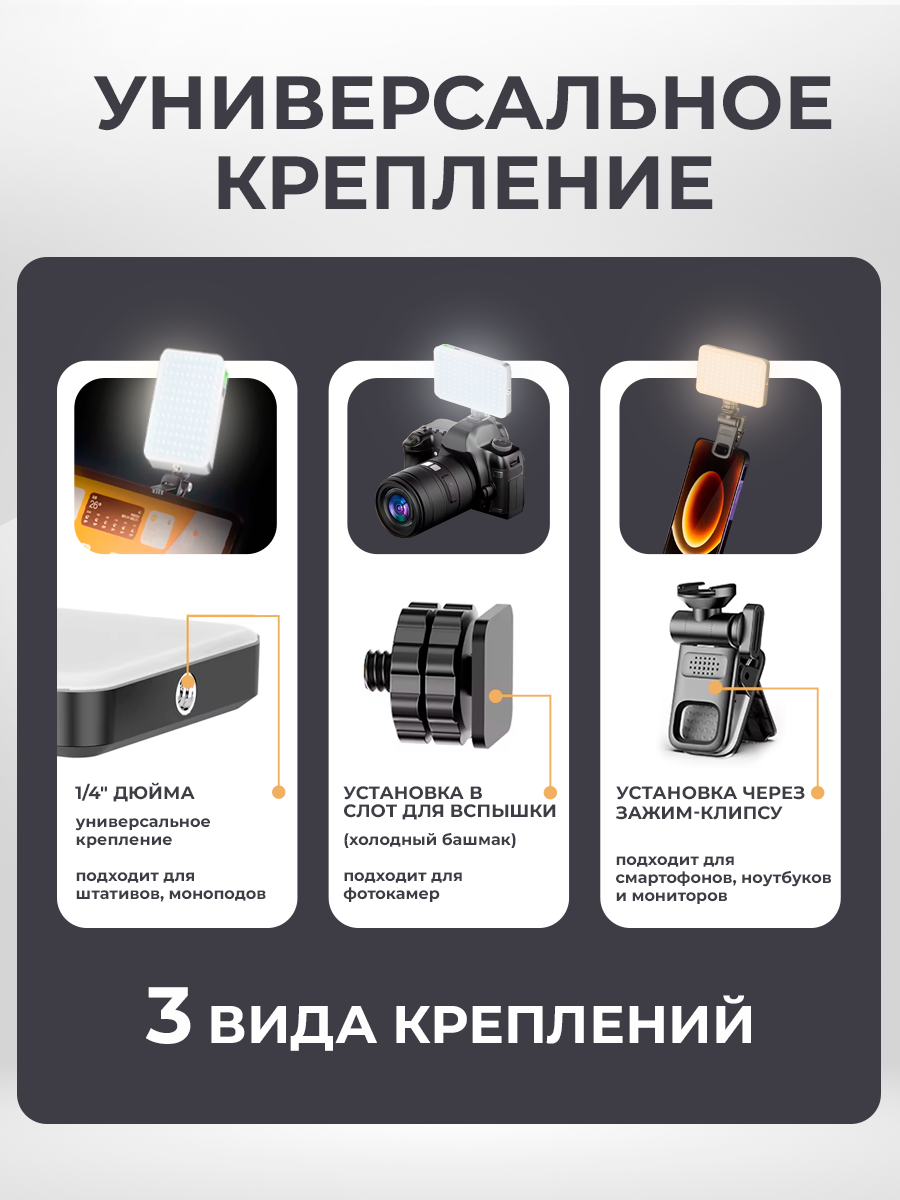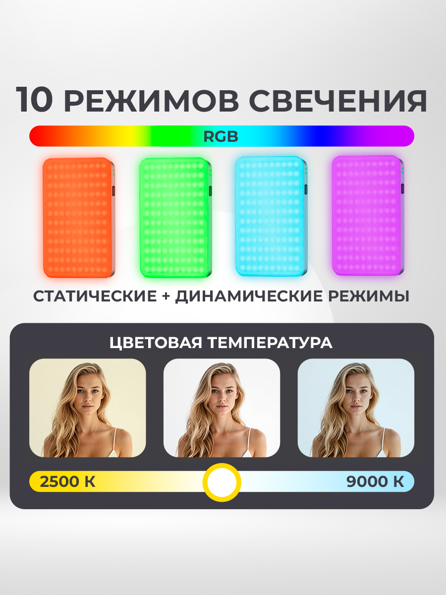 Купить Видеосвет портативный, WALKER WLR-A5, RGB, свет для видеосъемки, фотосъемки, студийный свет для стрима, осветитель для телефона, кольцевой лампы с доставкой по всей России.