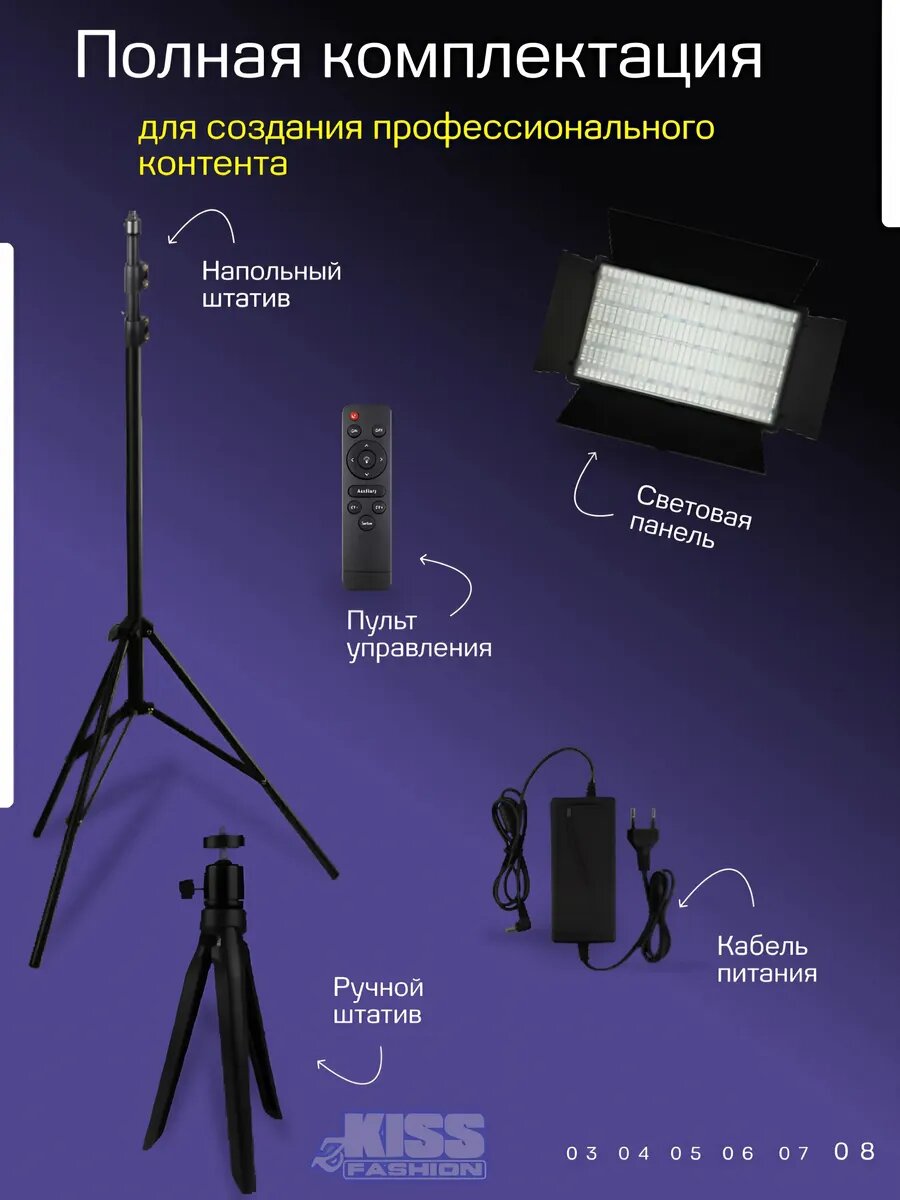 пульт ДУ, регулировка цветовой температуры, штатив в комплекте