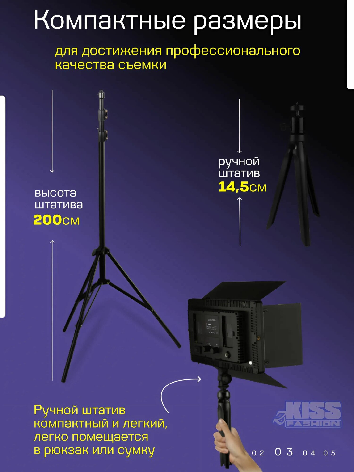 пульт ДУ, регулировка цветовой температуры, штатив в комплекте