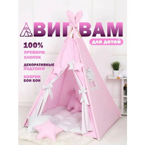 Купить Виг вам детский,180х110х110 см, палатка премиум холопок, коврик бон бон, розовый, серый с доставкой по всей России.