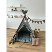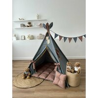 Детский вигвам для мальчиков и девочек -это уютное, укромное местечко в комнате, о котором мечтает каждый ребенок. В подарок к палатке для детей вы получаете декоративное деревянное украшение, мягкую воздушную подушку, флажки! То место, где ваш малыш будет главным, где он сможет погрузиться в мир своей фантазии, где маленькая принцесса может принимать гостей, а любознательные мальчики прятаться и придумывать разные сказочные истории. Основание домика мягкий коврик из натурального материала. Благодаря дышащей ткани, из которой выполнены стенки, в игровом комплексе не душно. Есть боковое окошечко и небольшое отверстие в верхней части, где сходятся стойки. А створки можно открыть и подвязать специальными ленточками, чтобы внутри стало еще свежее и светлее. В этот игровой комплекс могут убраться сидя и родители, ведь высота его 160 см. Как здорово будет провести в таком уютном месте время со своим ребенком. Ваш малыш это оценит. Ребенок будет счастлив, получив такой подарок. Мы отвечаем за качество и безопасность игр ваших детей! Покупая в дом подобный игровой домик фигвам, вы проявляете экологически ответственную позицию, которую подсознательно усвоит и ваш ребенок. К каждому виг ваму у нас приложена инструкция для правильного сбора, так что у вас не возникнет трудностей собрать его. Нам приятно будет получить от вас отзыв и фото счастливого ребенка, который получил свою первую недвижимость!