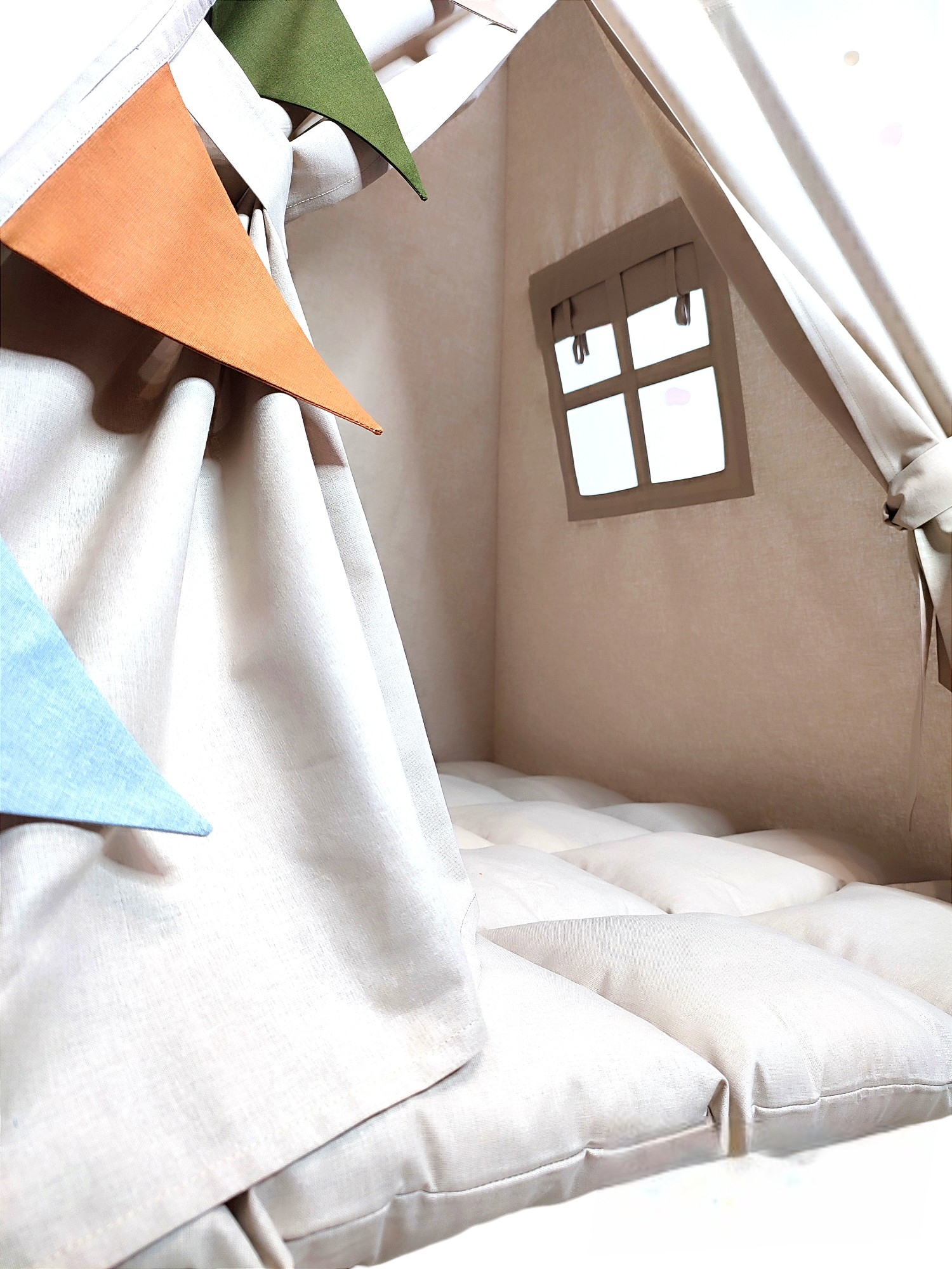 Шалаш для детей можно использовать в тёплое время года как детский уличный игровой комплекс. Детские вигвамы выполнены только из качественных натуральных тканей и гипоаллергенных наполнителей. Уход: деликатная машинная стирка при 30 градусах. Подробная инструкция по сборке и советы по уходу за игровым домиком прилагаются! Товар сертифицирован.