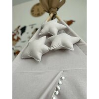 Детский игровой вигвам (домик для детей) - оригинальный подарок для ребёнка, место, где ребенок будет играть и отдыхать. Вигвам просто собрать. Комплект состоит: вигвам (100 % хлопок) с окном и занавеской, флажки на верх вигвама, прочный деревянный каркас из 4-х палок (шлифованная береза, палки сборные 8 штук по 90 см, преобразуются в 4 по 180 см.), веревка, система антискладывания, подушка, коврик фиксируется по углам к опорам. Уход: деликатная машинная стирка, 30 С, 800 оборотов отжимПалки вигвама: натуральная шлифованная берёза. Конструкция вигвама очень прочная, благодаря специальной системе антискладывания, что позволяет не складываться вигваму даже во время активных игр. Вигвам преображает интерьер, он подойдет в любую детскую и сделает её уютной и яркой.